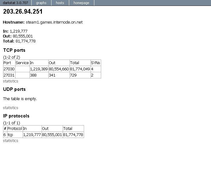 Darkstat fait tourner une interface Web en écoute sur le port spécifié.