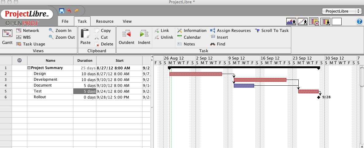 Project libre est un logiciel gratuit et libre de gestion de projet. Il a pour but de remplacer MS Project, d'où une interface utilisateur similaire et une possibilité d'ouvrir les fichiers MS Project. Project libre est interopérable Project, les diagrammes de Gantt et les tableaux PERT.