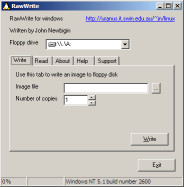 - Exécutez le programme RawWrite.- Sélectionnez le bon lecteur de disquette, si vous en avez plus d'un